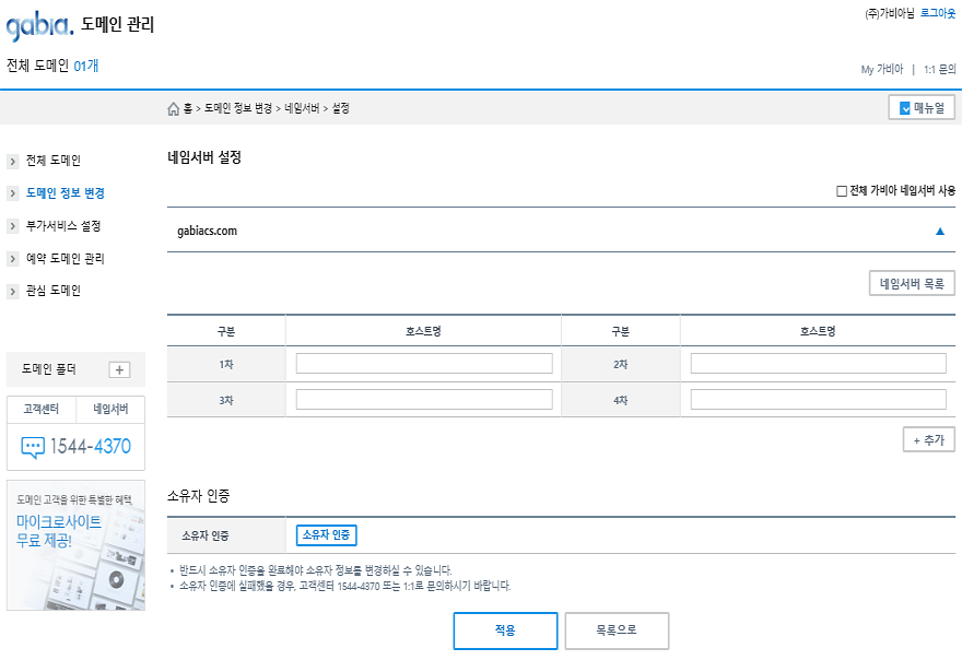 가비아에 돌아가고있는 네임서버가 있을 것이고,
