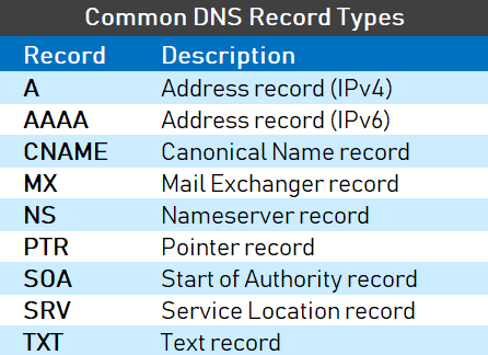 흔히 보거나 사용할 수 있는 것들은 A, AAAA, CNAME, MX, NS 정도이다.