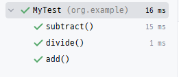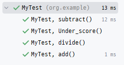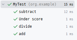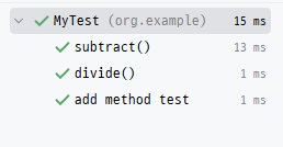 아래와 같이 @DisplayName 어노테이션을 추가하고 결과를 보면 이름이 붙게된다.