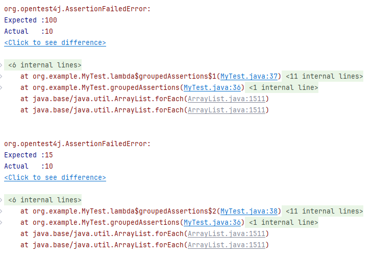 따라서 groupedAssertions() 테스트 메소드를 실행하게 된다면 아래와 같아진다.