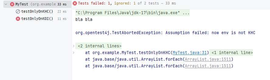 assumeTrue("KHC".equals(ENV), ()-> "now env is not KHC");