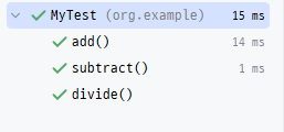 exceptionAssertions 메서드를 실행하기 앞서 Calculator 클래스에 divide 메서드를 추가하자.