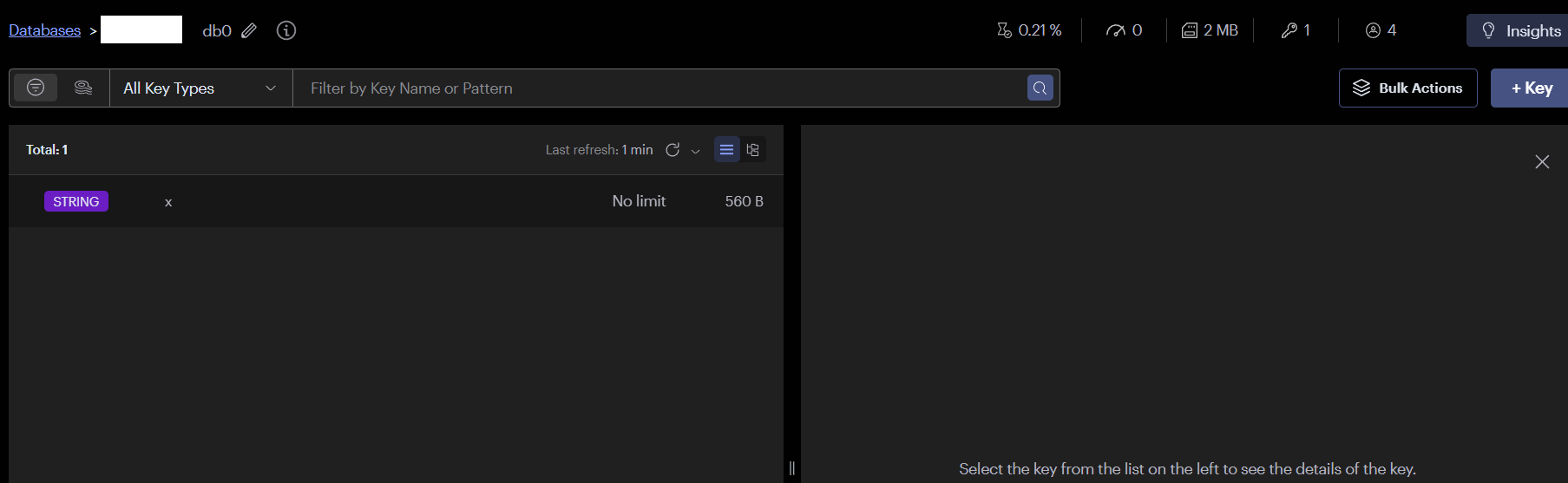 그러면 Redis 목록으로 넘어가게 되는데, 방금 추가한 녀석을 누르고 들어가면